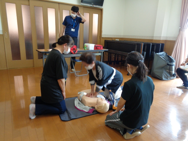 (職員編)防犯研修,AED講習 活動ブログ 2025年10月8日 いつも熊東園のHPをご覧いただきありがとうございます。 御船警察署様による防犯研修,フクダ電子様によるAED講習を行っていただきました。